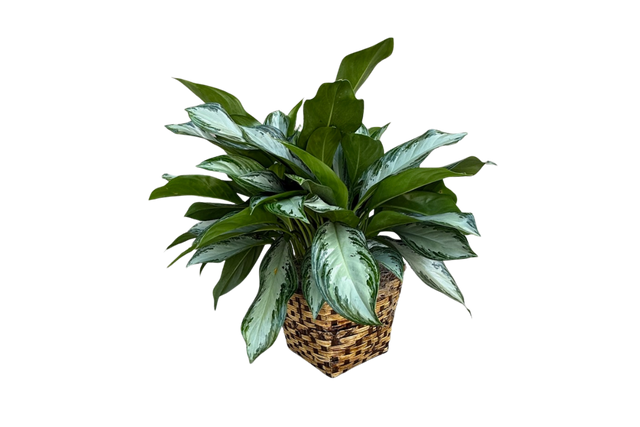 The Silver Bay Aglaonema is a striking houseplant with broad, silvery-green leaves that brighten any space. Easy to care for, it thrives in low to medium light and adds timeless elegance to your home or office